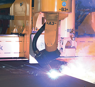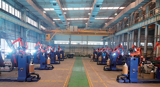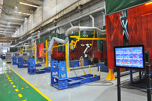 智能焊接作业区:首次应用大型变位机与机器人配合,大幅提升机器人焊接覆盖率